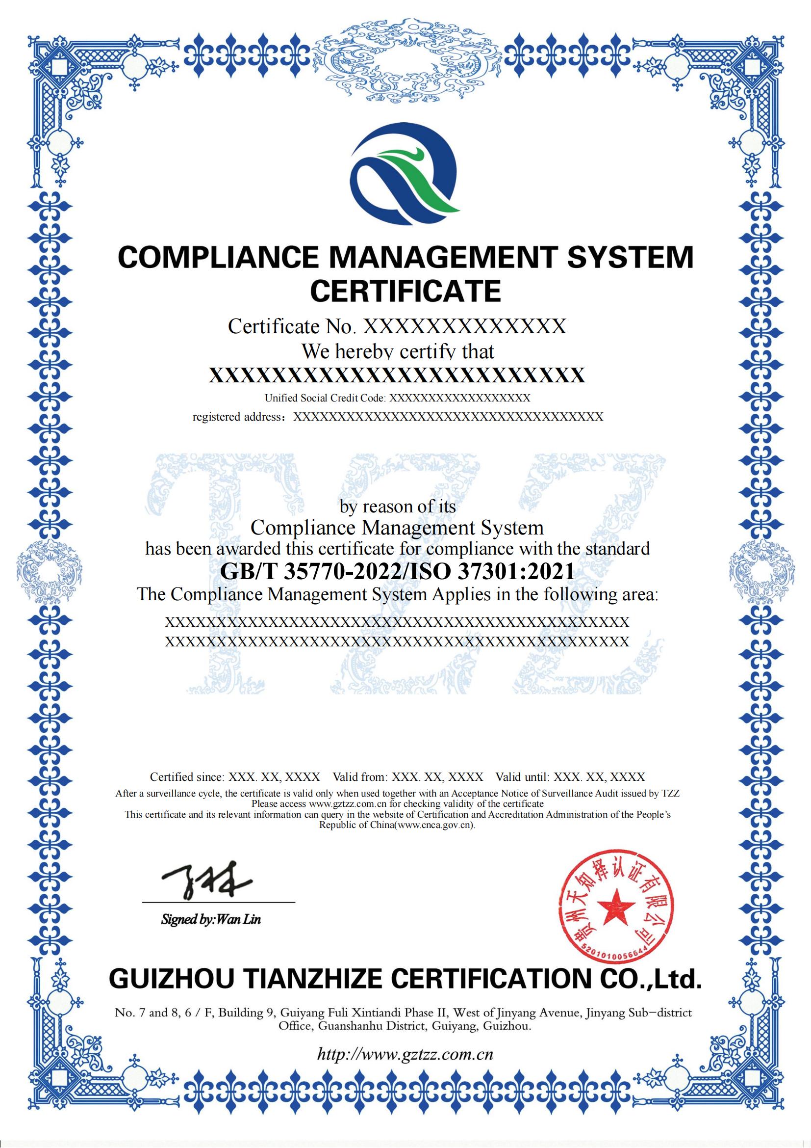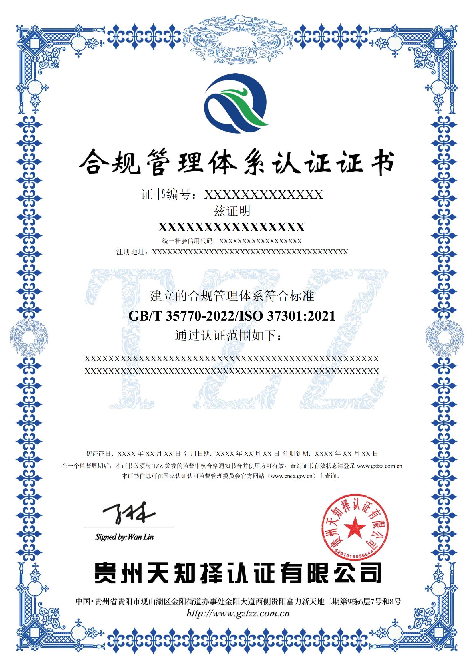组织依据GB/T 35770-2022/ISO 37301:2021《合规管理体系 要求及使用指南》认证标准建立、运行、完善管理体系,运行3个月以上,且进行了体系内部审核、管理评审,方能提出认证申请,且准备下面的资料:
