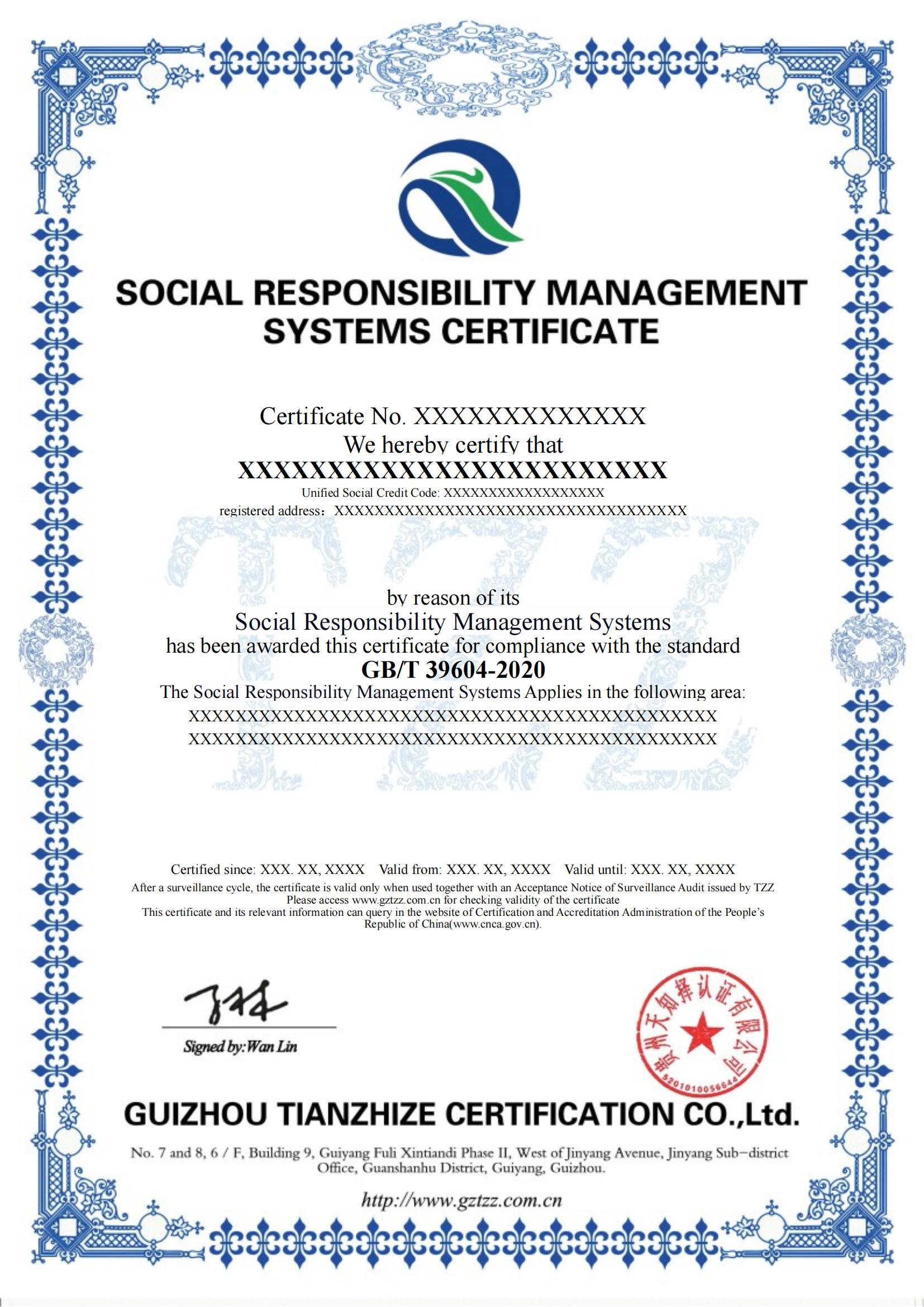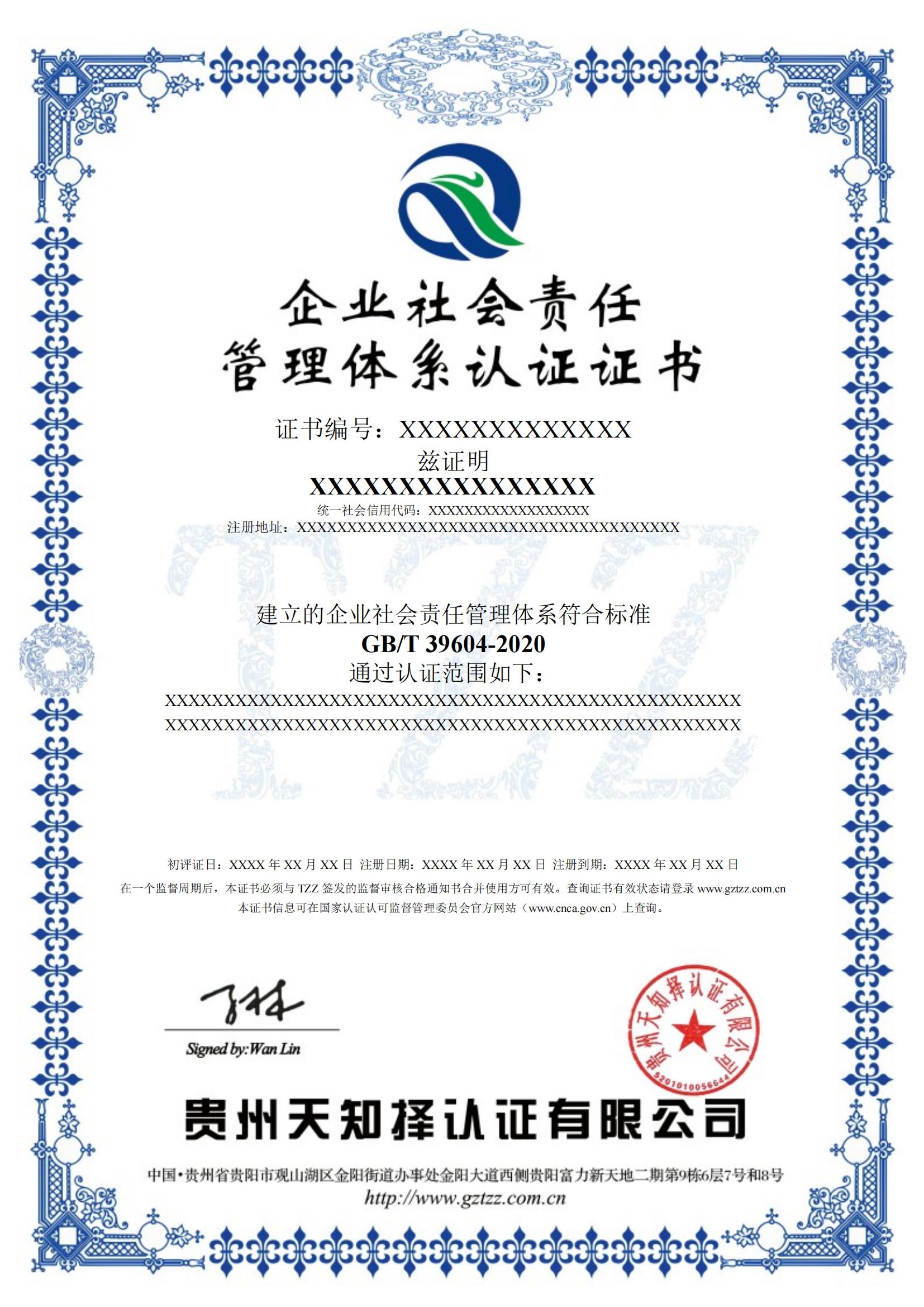 组织依据GB/T 39604-2020《社会责任管理体系 要求及使用指南》认证标准建立、运行、完善管理体系,运行3个月以上,且进行了体系内部审核、管理评审,方能提出认证申请,且准备下面的资料: