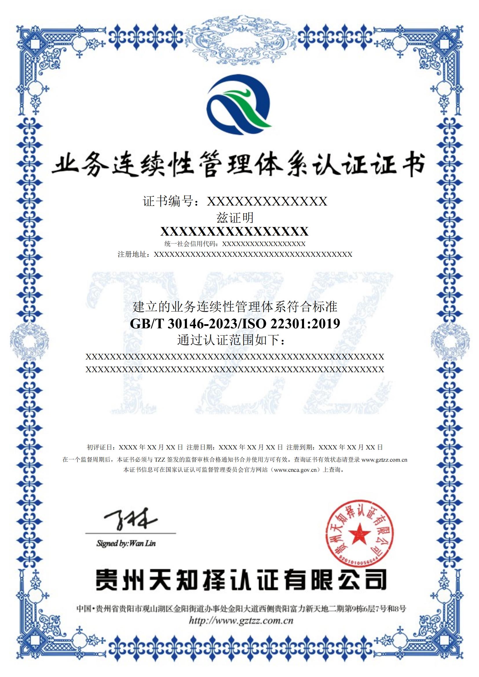 组织依据GB/T 30146-2023/ISO 22301:2019《安全与韧性 业务连续性管理体系 要求》认证标准建立、运行、完善管理体系,运行3个月以上,且进行了体系内部审核、管理评审,方能提出认证申请,且准备下面的资料: