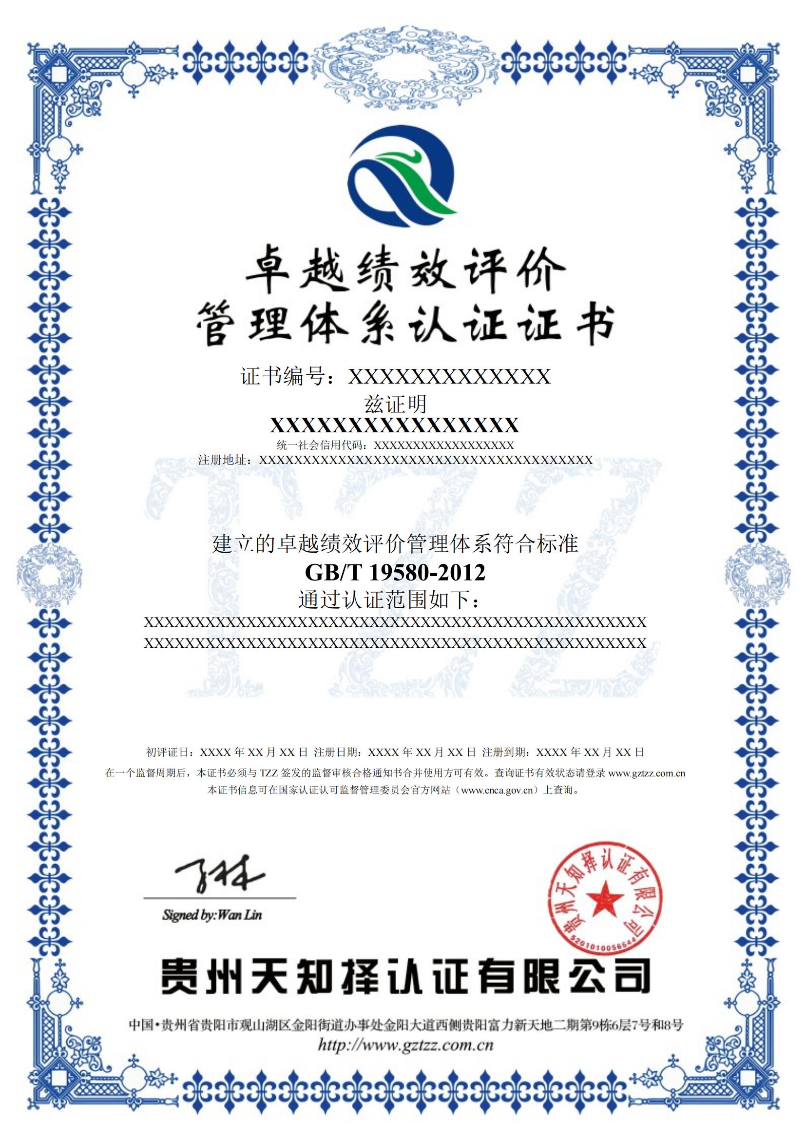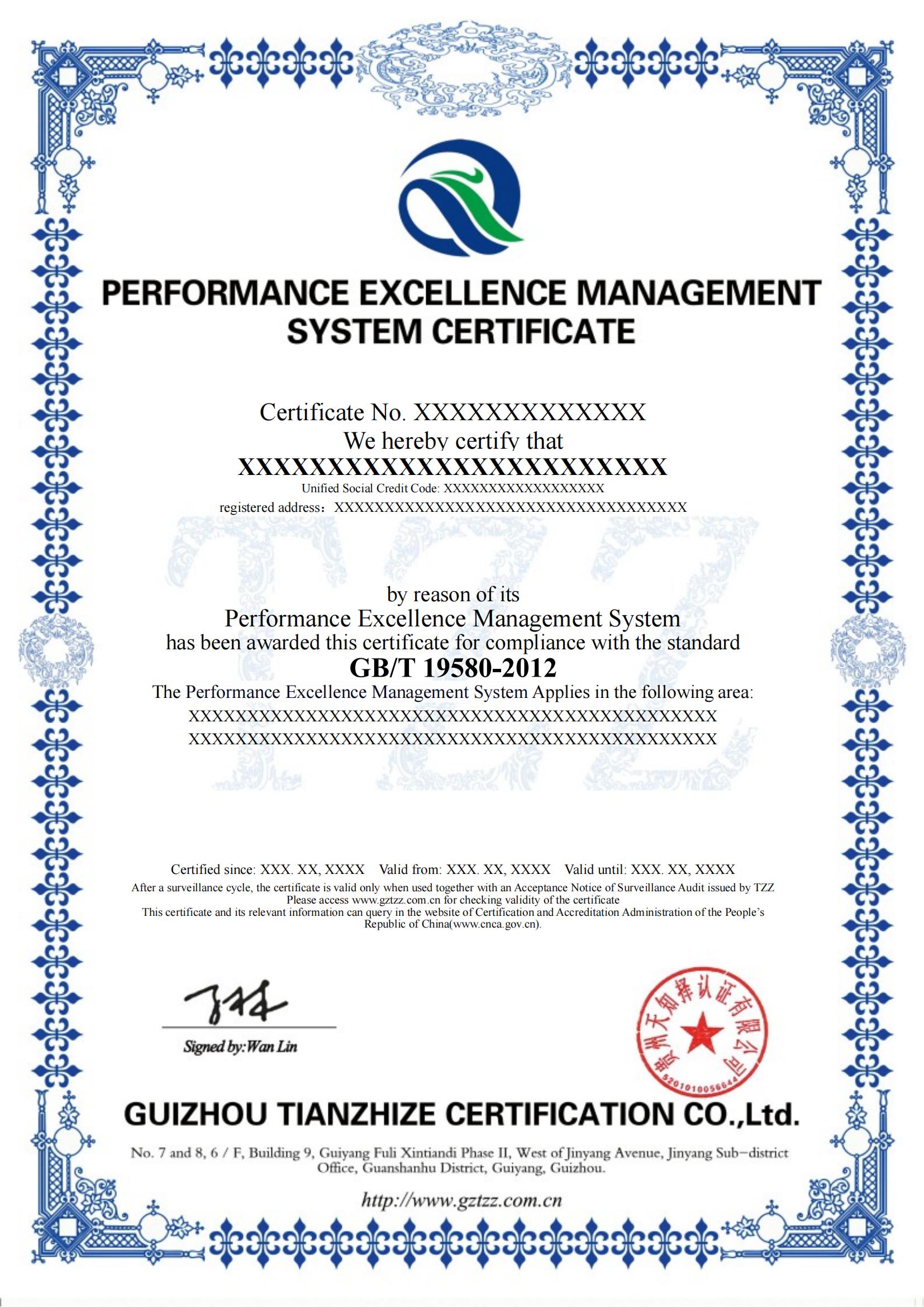 组织依据GBT 19580-2012《卓越绩效评价准则》认证标准建立、运行、完善管理体系,运行3个月以上,且进行了体系内部审核、管理评审,方能提出认证申请,且准备下面的资料: